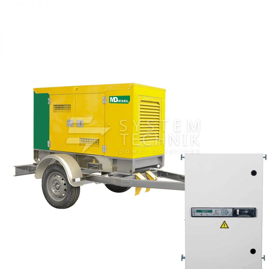 - MitsuDiesel МД ЭД-60-Т400-2РКМ29 в шумозащитном кожухе на шасси с АВР на прицепе