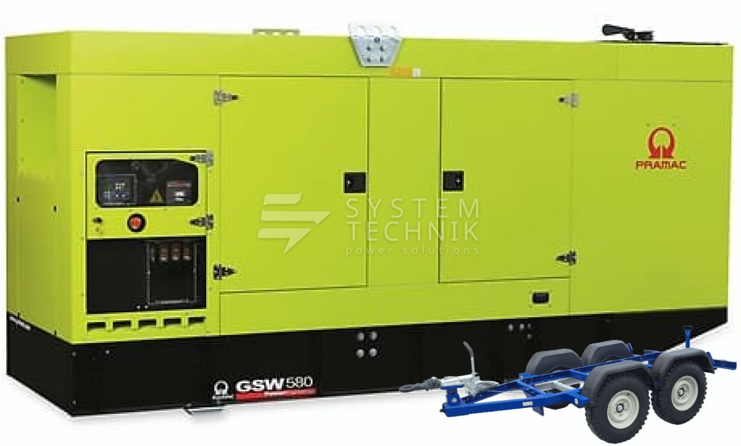 - Дизельный генератор Pramac GSW 580 DO 480V В кожухе на прицепе