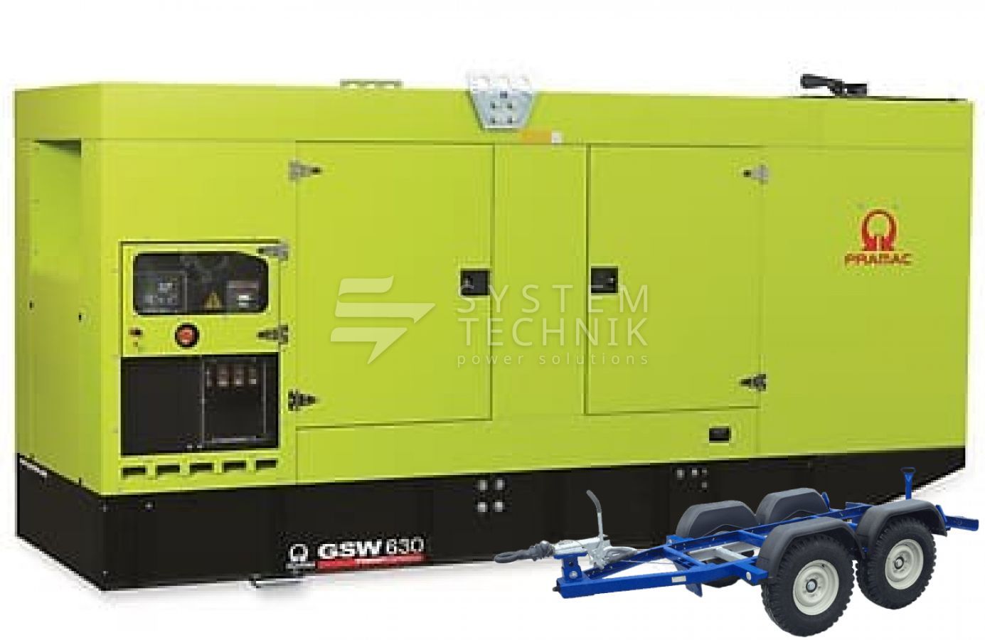 - Дизельный генератор Pramac GSW 630 DO 400V В кожухе на прицепе